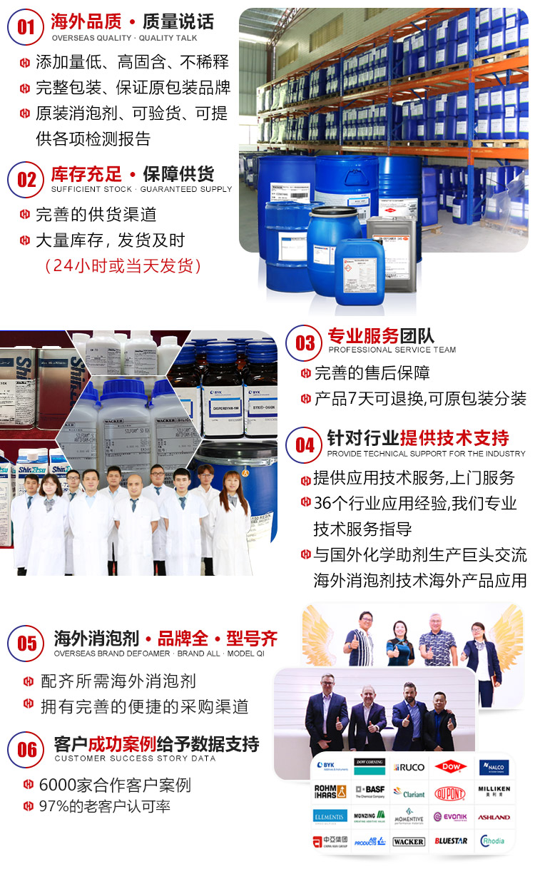 • 與消泡劑原材料廠家親密合作,可提供原材料合格證書